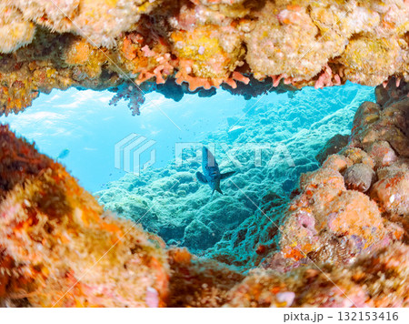 水中洞窟のチョウチョウウオ他の群れ。ヒリゾ浜中木南伊豆町伊豆半島静岡県2024