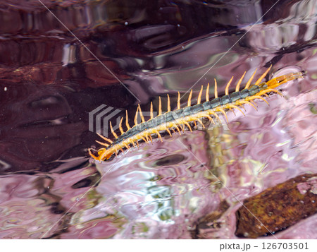 水面を漂う大きなムカデ(オオムカデ科)。 ヒリゾ浜中木南伊豆町伊豆半島静岡県2024