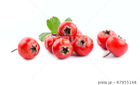 A Close-Up Hawthorn Berries with Leaf on White Background