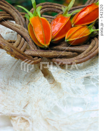 生薬のイラスト/ サンシシ (山梔子)の花と果実