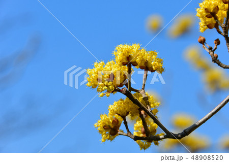 葉が出る前にたわわに黄色の花をつけ早春の訪れを告げるサンシュウ