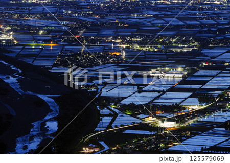 スカイ獅子吼から眺める水鏡の手取川扇状地