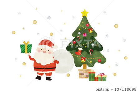 サンタクロースとクリスマスツリーの水彩風イラスト