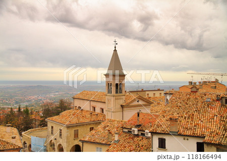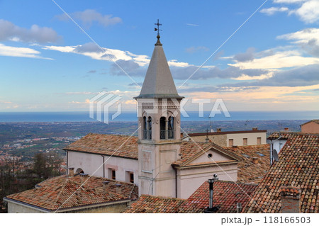 イタリアの中のサンマリノ共和国 ティターノ山麓の世界遺産ボルゴマッジョーレ旧市街とアドリア海の景色
