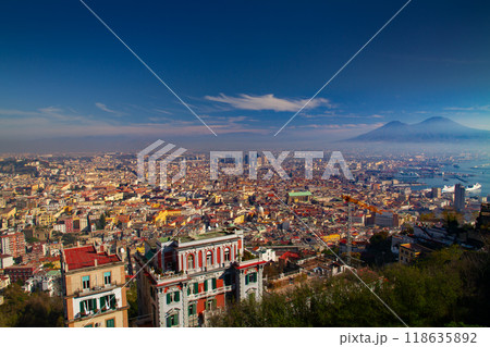 イタリア共和国カンパニア州ナポリ 世界遺産ナポリ歴史地区のサンテルモ城からの市街とヴェスヴィオ山眺望
