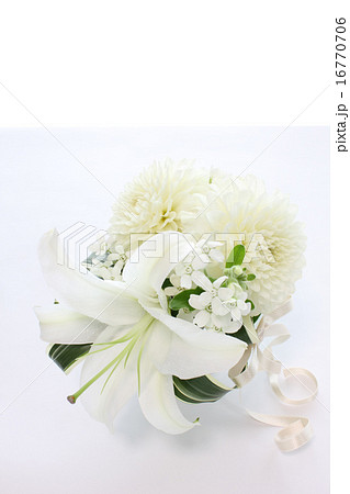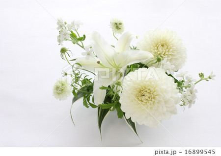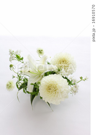 ユリとダリアとホワイトスターのアレンジ(縦)