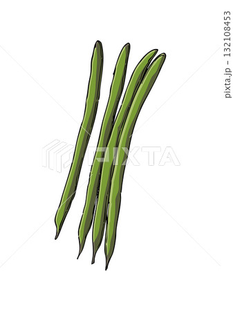 二本のリアルなさやいんげんのイラスト素材(水彩)