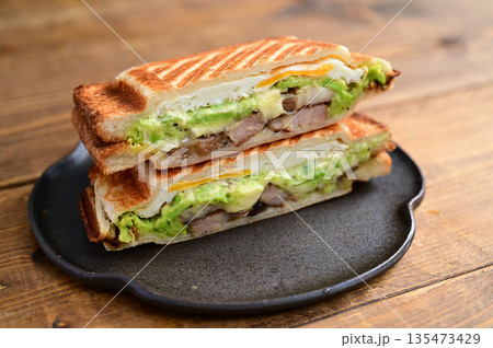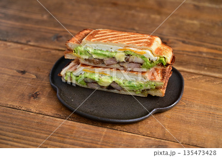 サンドイッチとテイクアウトのコーヒーの軽食をイメージしたイラスト