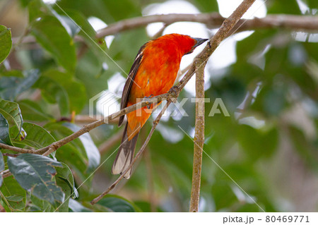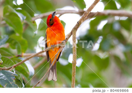 中南米の熱帯雨霧林の中で生息するオナガレンジャクモドキ