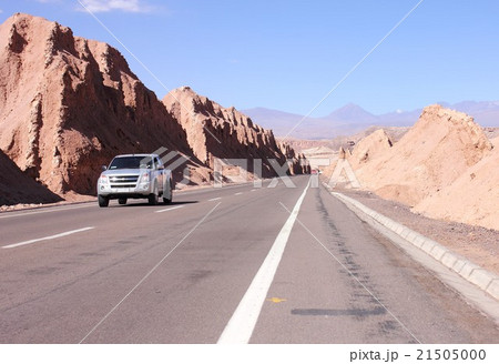 南米チリ、アンデス山麓のアタカマ砂漠にある月の谷の奇岩の中を走る幹線道路