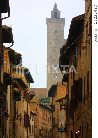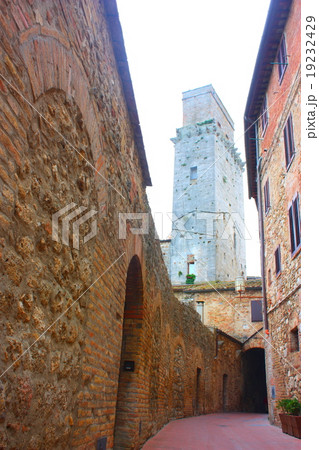 イタリア サン・ジミニャーノの路地から見えるトッレ・グロッサ