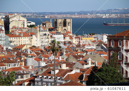 リスボン サン・ペドロ・デ・アルカンタラ展望台から見た街並みとカテドラル