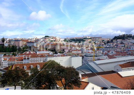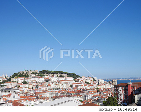 ポルトガル、リスボン、サン・ペドロ・デ・アルカンタラ展望台からのサン・ジョルジェ城