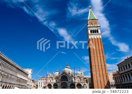 世界遺産ヴェネツィアのサンマルコ広場の大聖堂と鐘楼