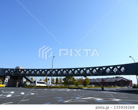 日本の横浜都市景観 歩道橋のある街。みなとみらいの新港サークルウォークや新港中央広場のエスカレーター