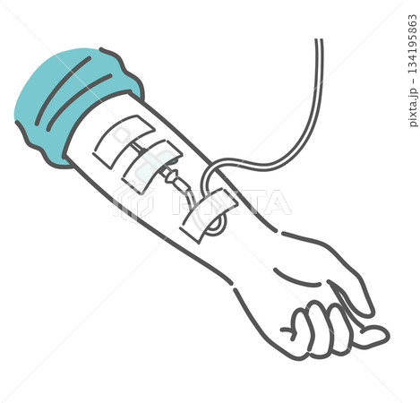 点滴(輸液)中の腕のイラスト(留置針とテープ固定)