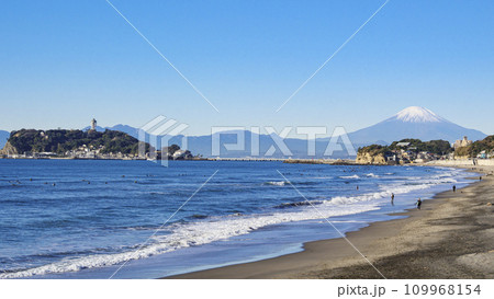 湘南海岸から見た冬の富士山の海