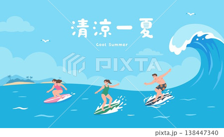 サーフィンする男性のイラスト