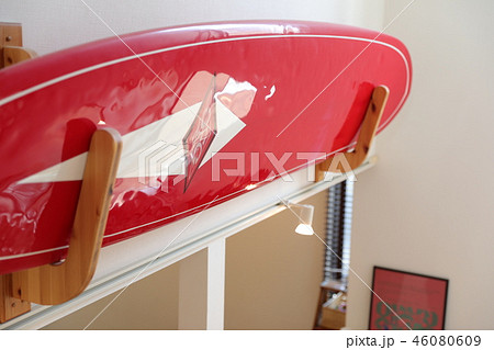 壁にかけたサーフボードのイラスト