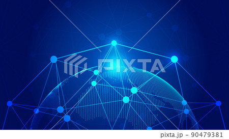 數碼地球、點線連接,創新科技多邊形網絡連接概念