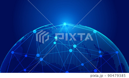 由點、粒子、數碼地球組成的三維球體,全球化網絡科技、技術概念抽象圖形