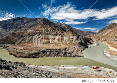 Confluence of Indus and Zanskar Rivers in Himalayas