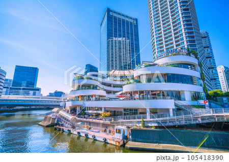日本の横浜都市景観 横浜ベイクォーターや水上バス、ヨコハマポートサイド地区などを望む