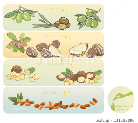 オリーブオイルとシアバターとマカダミアナッツオイルとアーモンドオイルのイラスト