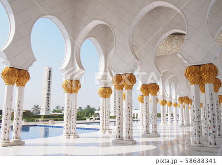 UAE アブダビ シェイクザィードモスク 回廊の柱