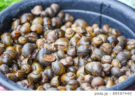 Apple snail freshwater snail river from nature field for food cooked Thai local food, Pila ampullacea shellfish