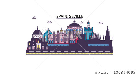 Spain, Seville tourism landmarks, vector city travel illustration