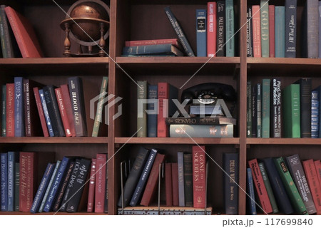 本棚と洋書のアンティークなイメージの素材画像
