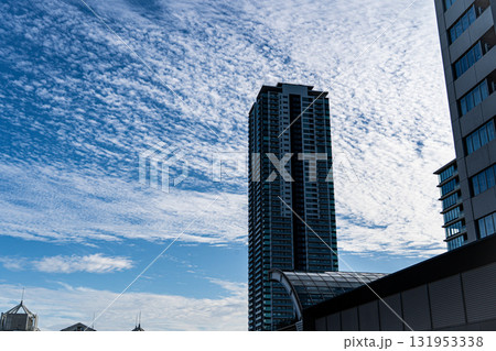ビルの谷間から見上げる鱗雲