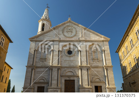 Pienza Duomo facade showing Renaissance architecture in Tuscany