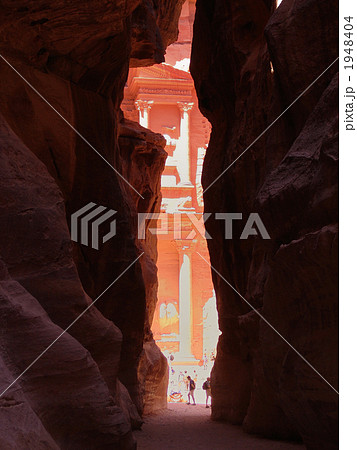 ヨルダン世界遺産ペトラ遺跡のシク 正面にエルハズネ