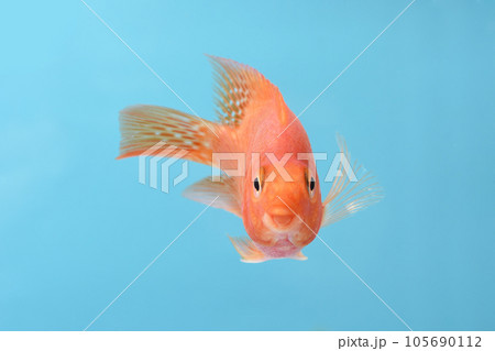 Astronotus ocellatus or ocellatus on blue water background in aquarium