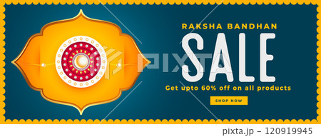happy raksha bandhan traditional banner with flat rakhi and marigold flower