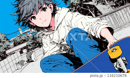 スケートボードを楽しむ若者