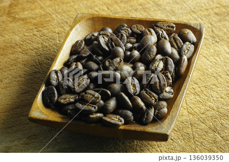 カップに入れたコーヒー豆 モカ テーブル