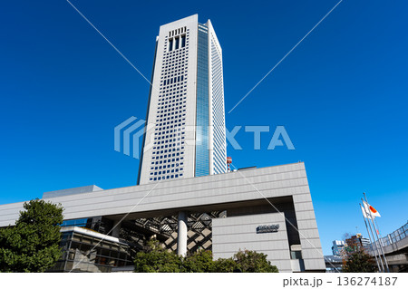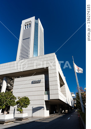 新国立劇場オペラパレスと東京オペラシティと広大な青空 東京都渋谷区本町