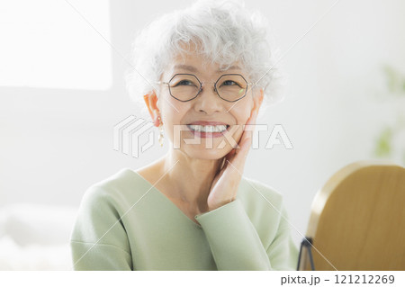 ノースリーブを着ているシニア女性 デンタルケアイメージ
