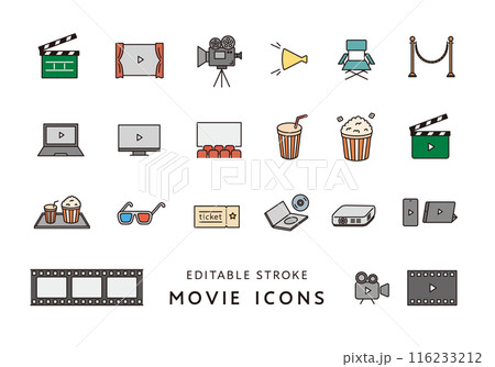 映画にまつわる手描きイラストセット(カラー/主線なし)