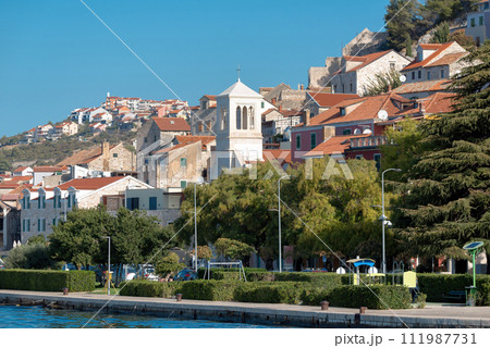 クロアチア シベニクの旧市街の海岸沿いの風景