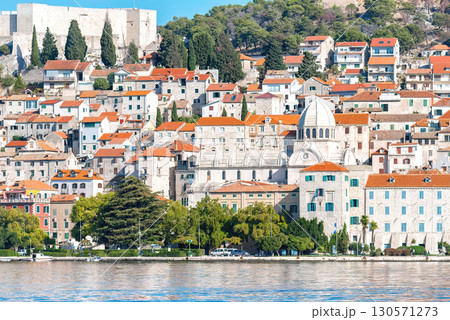 Sibenik cityscape with old town buildings and sea. Croatia