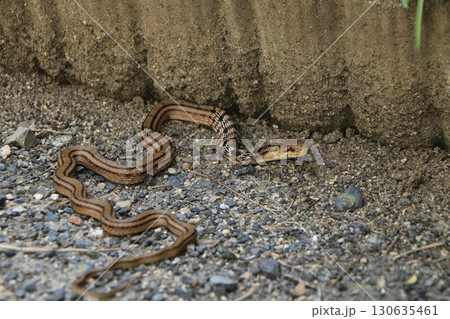 赤褐色のシマヘビ(幼蛇)