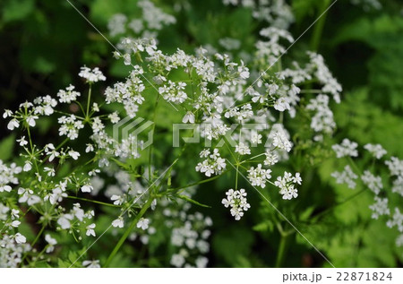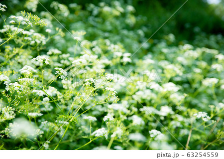 White Anthriscus sylvestris grows in the summer meadow. Cow parsley growing at the edge of a hay meadow close up