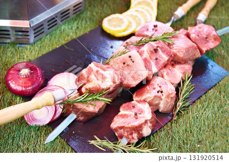 Skewered marinated raw pork