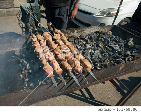 meat is fried on coals, Asian cuisine