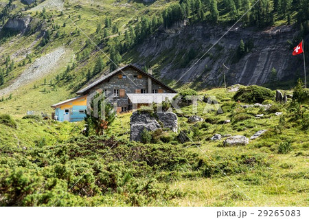 スイス アルプスの麓で放牧に使われるアルプ小屋