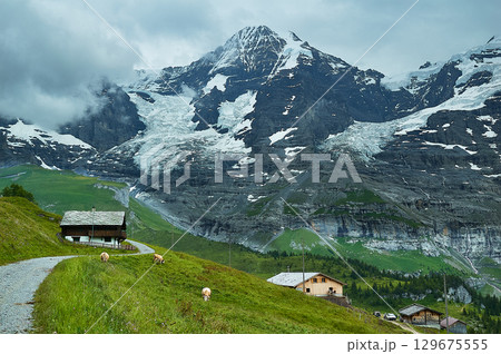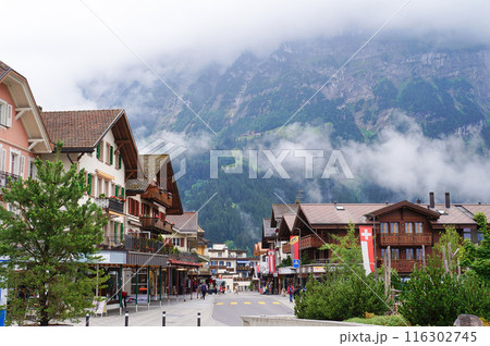曇天のグリンデルワルト ドルフ通り【スイス】
